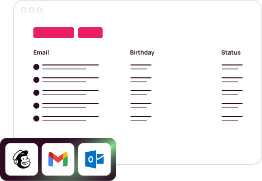 Import contacts with little effort to your emailing list from files, Mailchimp, Gmail or Outlook. Add contacts to existing lists and use filters to sort out the subscribers. Easily export your entire subscriber list or remove contacts when necessary. Manage your contacts by editing and updating data or delete fields you don’t need. Don’t forget to add the birthday field to your contacts for that special birthday reminder.