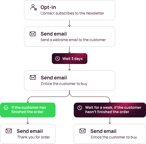 Automatic emails are here to help you to make your work easier! Constant and relevant communication with your clients can be automated in many cases; you only need to use personalized content in some parts of an email. With Volt Mail Agency, it is easy to make custom-made automation workflows that do precisely what is needed!